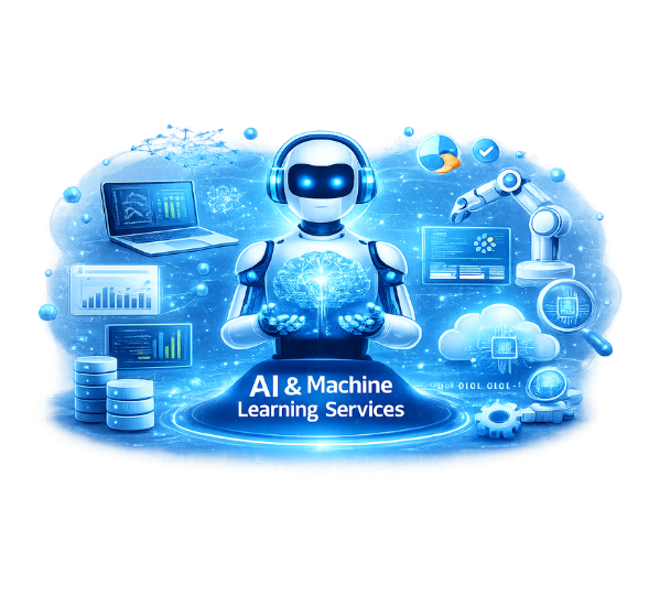 We deliver smart automation, advanced data insights, and intelligent systems designed to streamline operations and improve decision-making. Our tailored AI & ML solutions help businesses boost efficiency, enhance customer experiences, and achieve faster, sustainable growth.