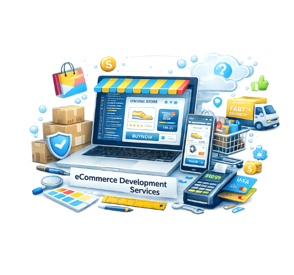 Our eCommerce development services help businesses design and build secure, scalable, and user-friendly online stores tailored to their products and customers. We develop custom eCommerce websites, integrate payment gateways, optimize checkout experiences, and implement powerful features using platforms like Shopify, Magento, and WooCommerce to ensure smooth store management, high performance, and better conversion rates.